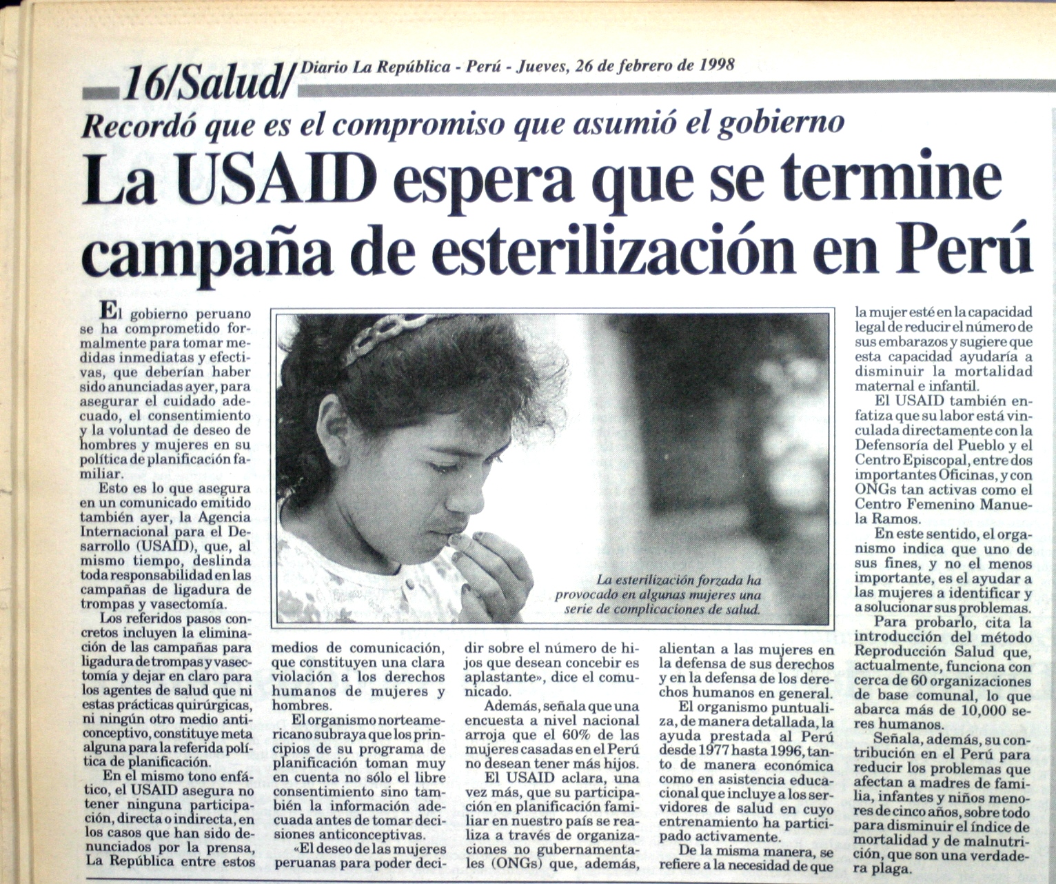 esterilizaciones forzadas, genocidio, alberto fujimori, usaid, la república