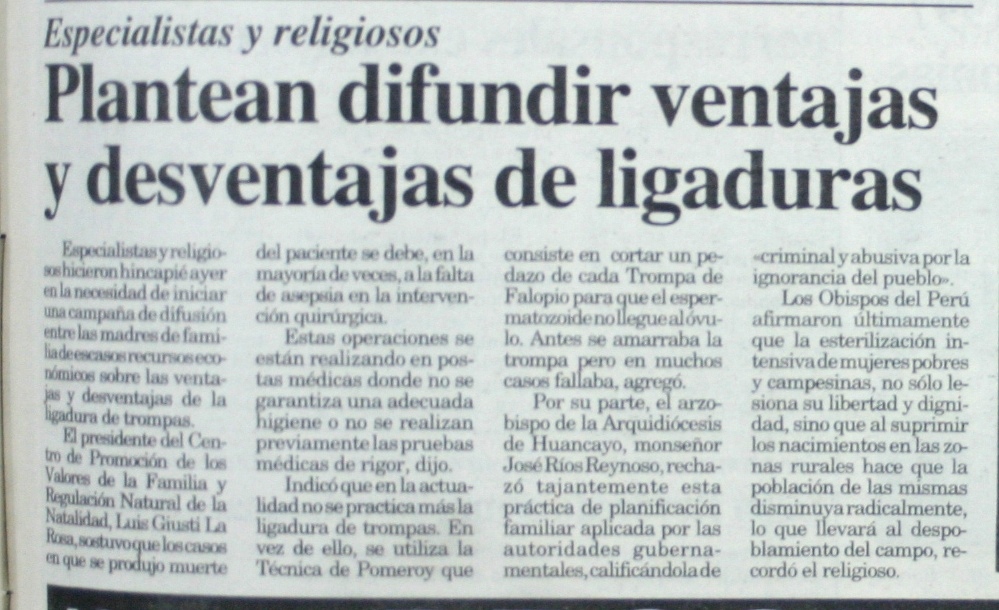 esterilizaciones forzadas, genocidio, alberto fujimori, opiniones, iglesia